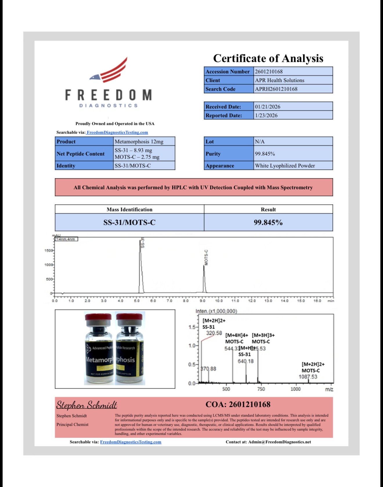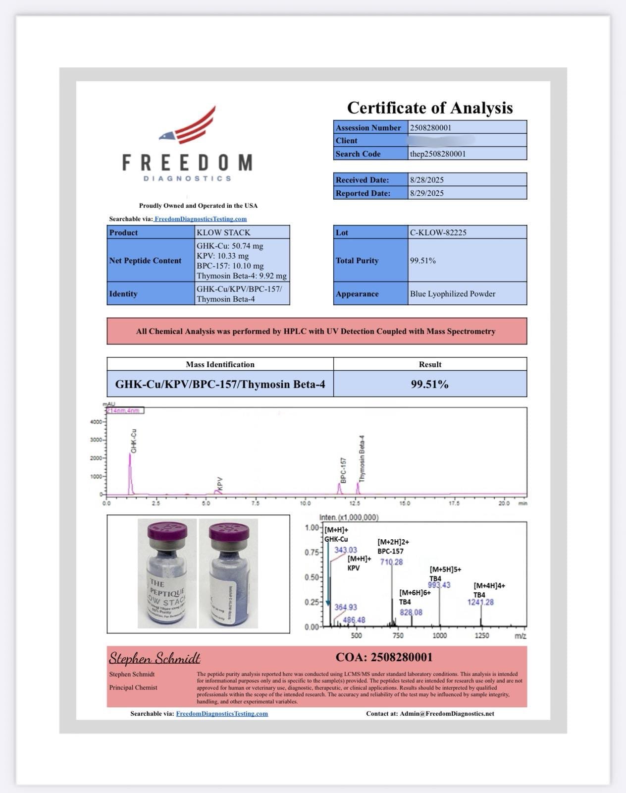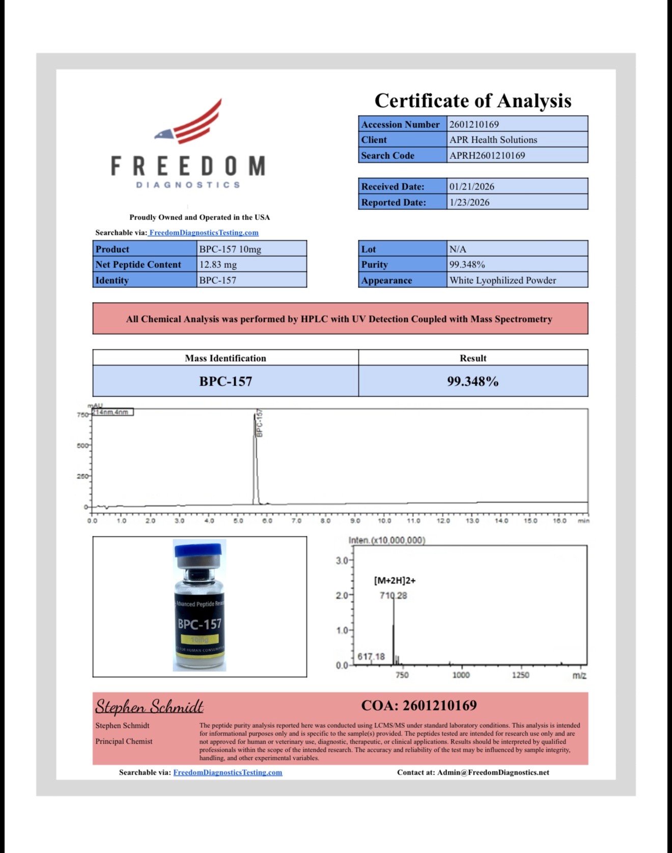 Below you will find Certificates of Analysis (COAs) for our research products. Each document provides third-party laboratory results confirming identity, purity, and quality.